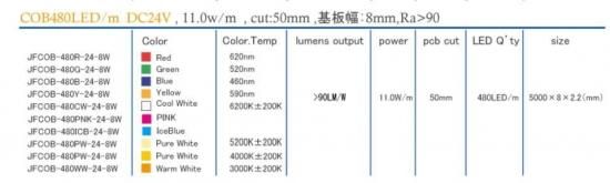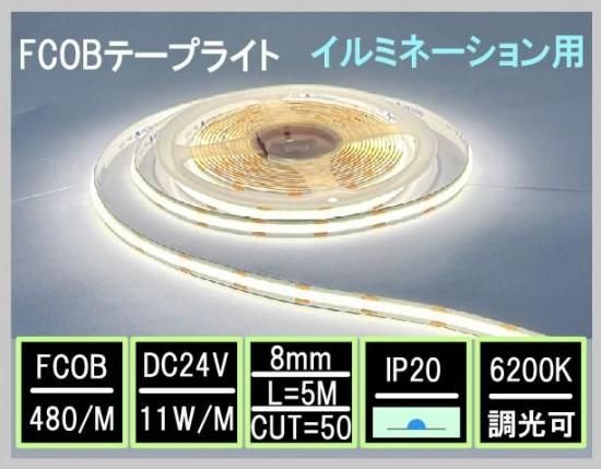 FCOB Seamless Tape LED 24V 480LED/M クールホワイト色 非防水  IP20